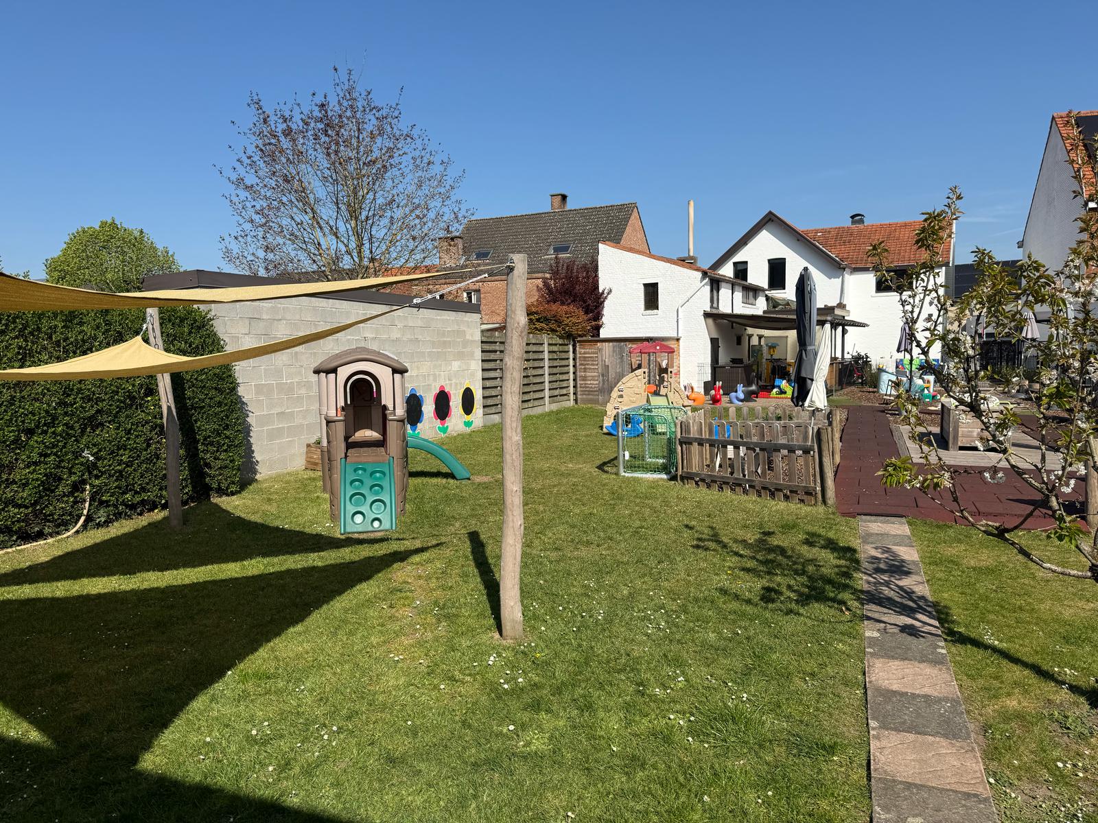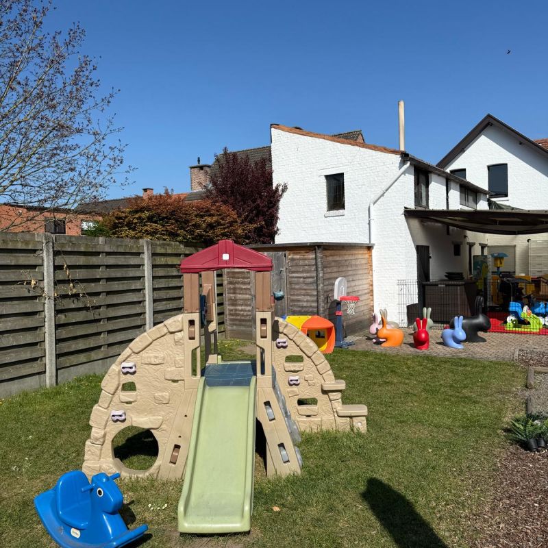 De tuin van De Zandkapoentjes is meer dan een stukje groen – het is een ontdekplek, een speelparadijs en een rusthoek in één. Hier kunnen de kinderen ravotten in het gras, verstoppertje spelen tussen de struiken of keukentje doen met zand en water. Er is ruimte om te klimmen, te bouwen, te dromen en gewoon kind te zijn.